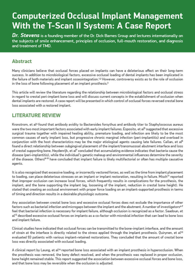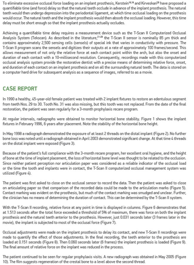 Computerized Occlusal Implant Management With the T-Scan II System: A Case Report