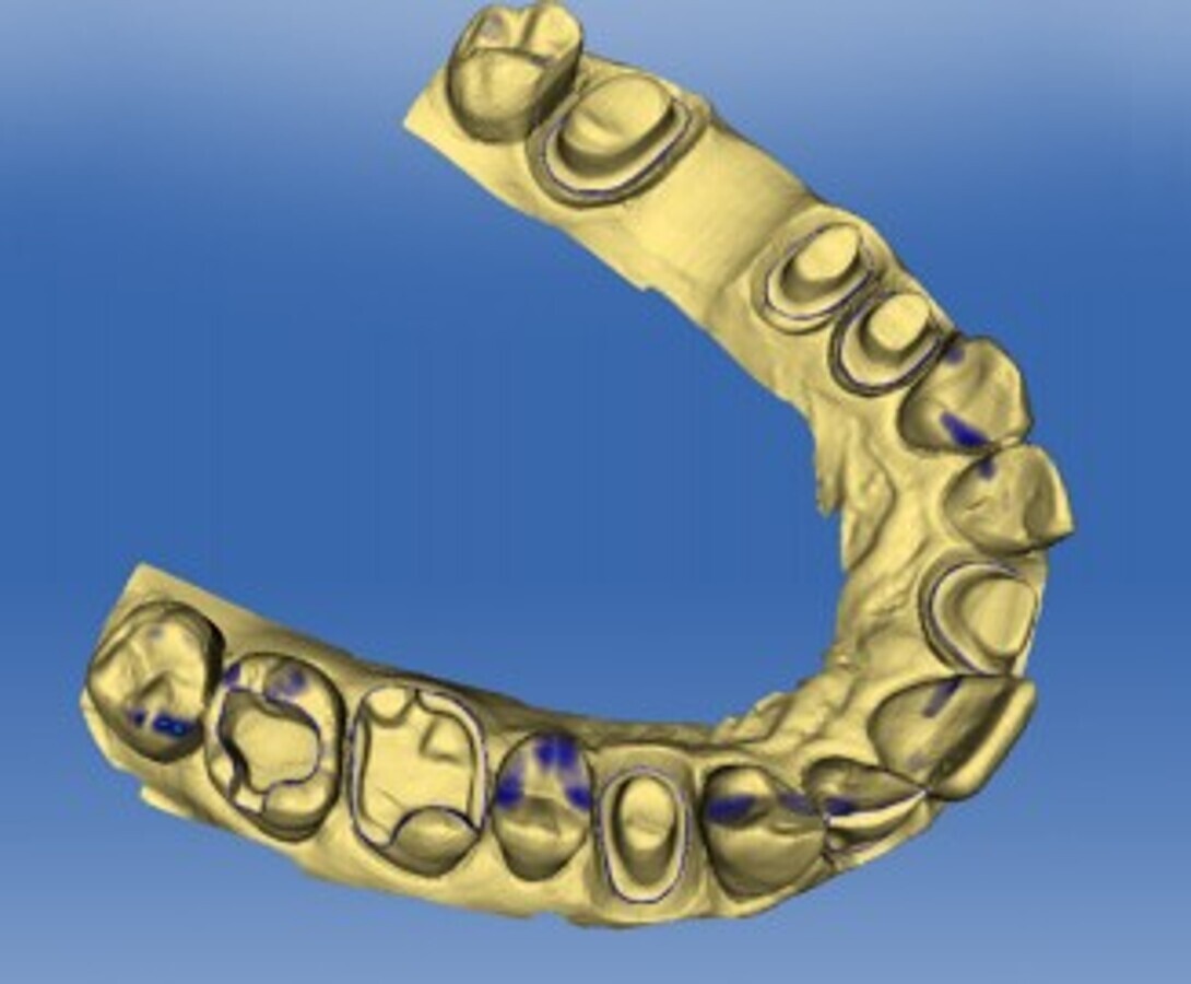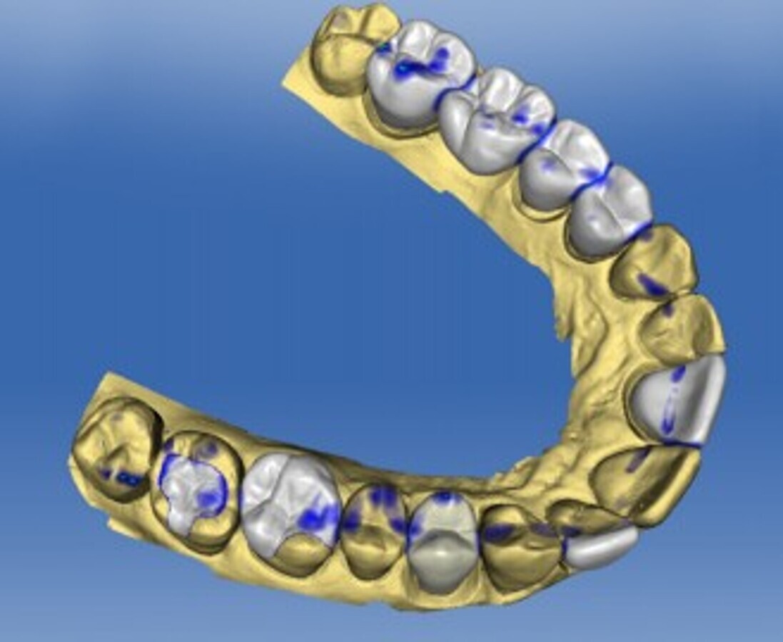 Biojaw enables even completely edentulous situations to be reconstructed. If there is no remaining dentition at all, the alignment is calculated using the alveolar ridge and the occlusal plane, for example. The following however applies. The less remaining dentition there is, the more the proposal tends towards the „average jaw.“ Very good results can be obtained even with free-end situations. For these, the scan of the antagonist is very important. The information from the Biojaw is also very helpful for inlays, veneers and onlays. The adjacent teeth can be analyzed more effectively and cusp tips, marginal ridges, approximal surfaces and incisal edges can be detected. If the Biojaw lies exactly flush against these tooth surfaces, the area to be reconstructed is simultaneously automatically aligned correctly in terms of the height of the marginal ridge, the course of the incisal edge or the approximal contacts in a knowledge-based procedure.