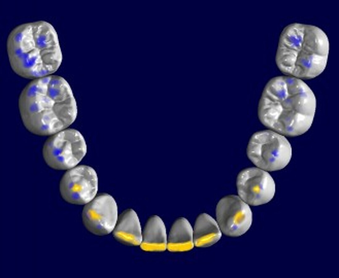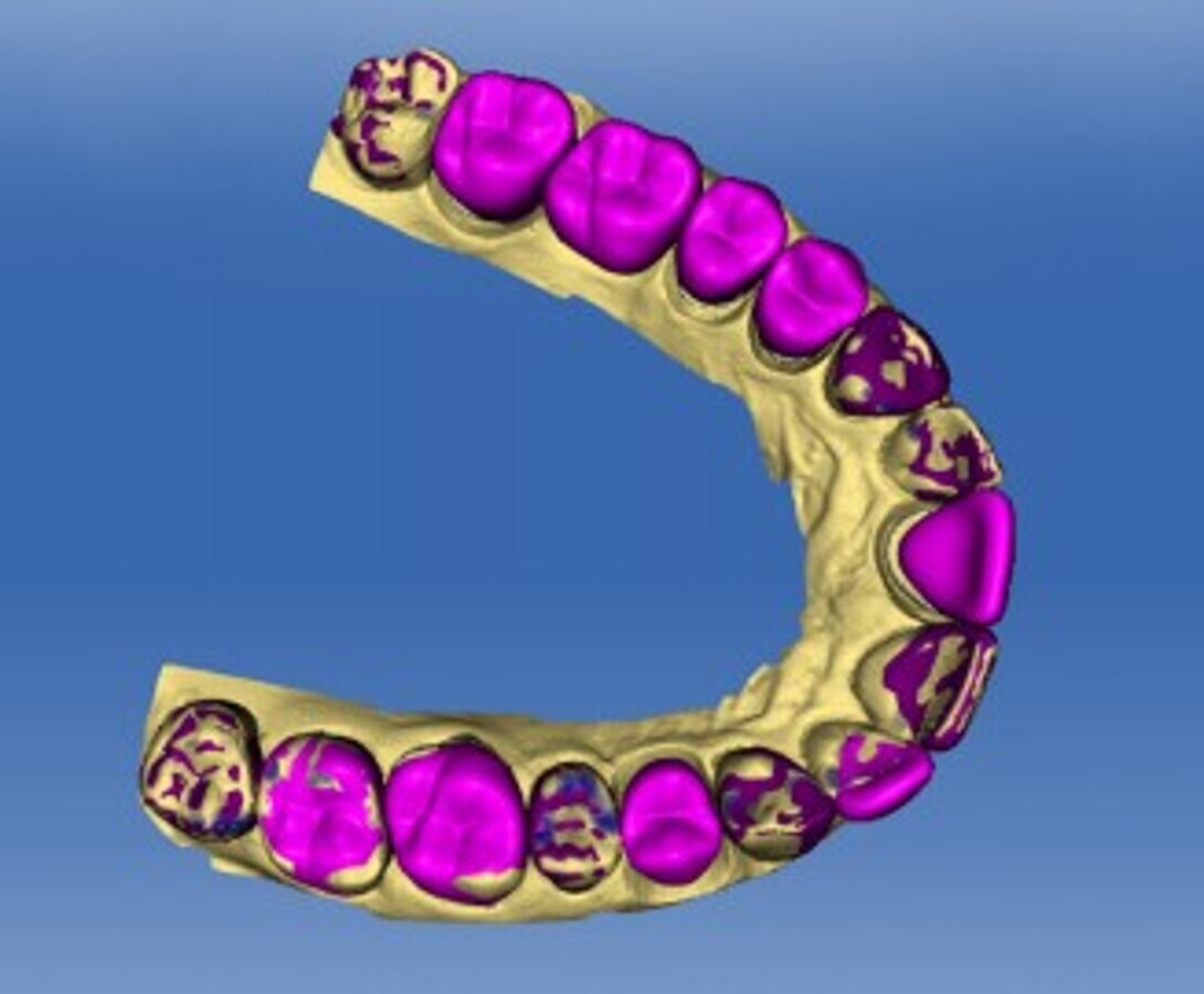 Once the position of teeth has been determined with Biojaw, the individual shapes can be adjusted precisely with biogenerics. At the same time, exact points of contact with the adjacent (approximal) and antagonist (occlusal) teeth are precisely adjusted again, abrasions are detected, transitions to the preparation borders are re-adjusted, and minimum layer thicknesses are maintained, to enable preparation of an expedient, lifelike tooth restoration.